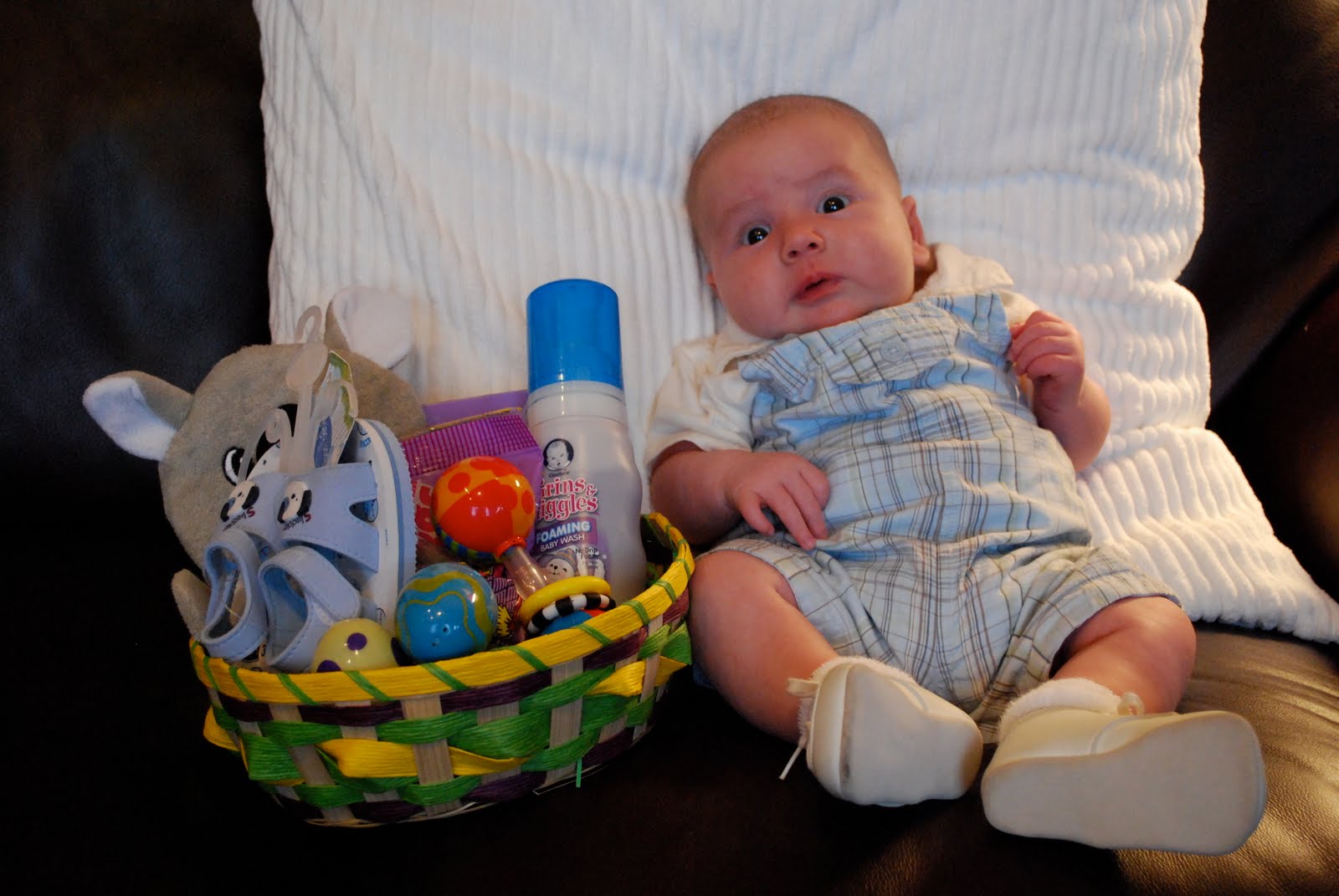 Easter is a low-key holiday at the Shenk house. James got a cool set of blocks this year from Mom & Dad and the basket of goodies came from the Florida Easter Bunny (aka Mimi Shenk). We sat James in the same spot on the couch to check out his basket and realized how far he has come in one year.