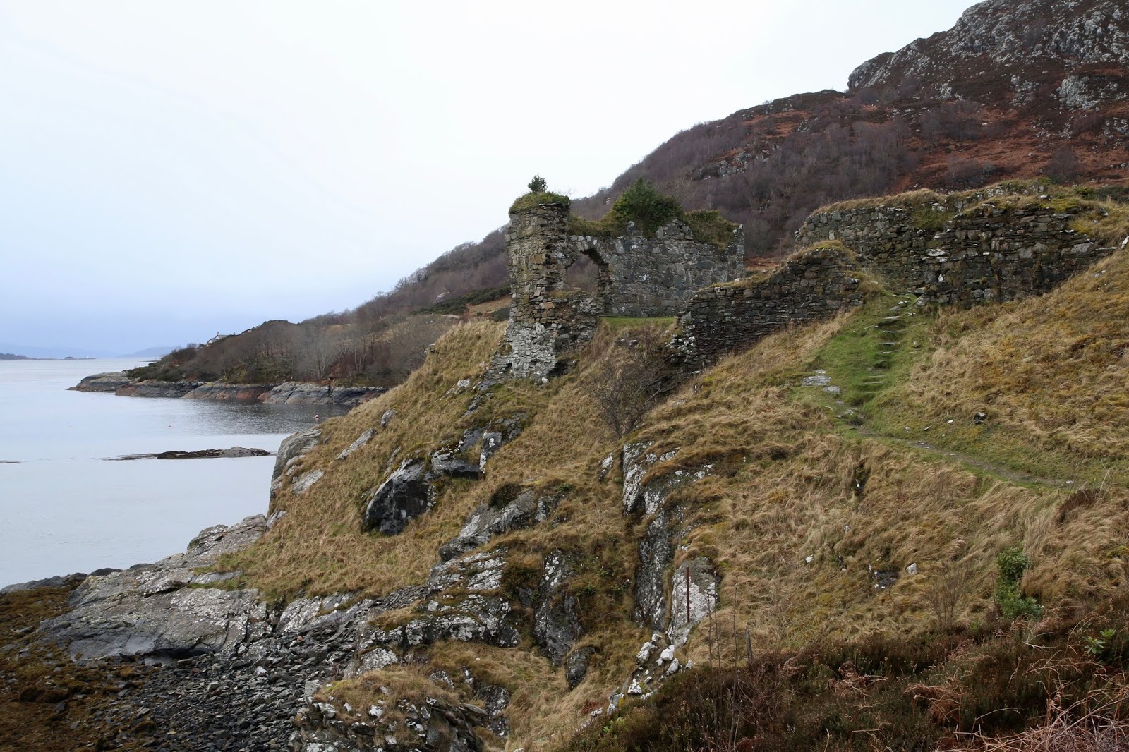 With nothing quite going to plan that morning, we decided to give up and head back towards Inverness to see if we could tackle some other areas on our list. At one point, we came to a “T” in the road and we needed to turn right. However, there was a sign that said if we turned left, there was a castle ruin a few kilometers away. We decided the detour was worth a look and headed down the road to check it out. After a drive through the quaint little town of Lochcarron, we found Strome Castle perched on the edge of a cliff overlooking the waters of Loch Carron. No one else was around. We had the place completely to ourselves, which just made it even more fantastic. Taking that detour turned the day around for us and we were so glad we did it. I suppose that’s a pretty good metaphor for life– sometimes a detour from your original path can lead you to an unexpected amazing new place. (I know, it’s a travel blog. No more philosophy.)