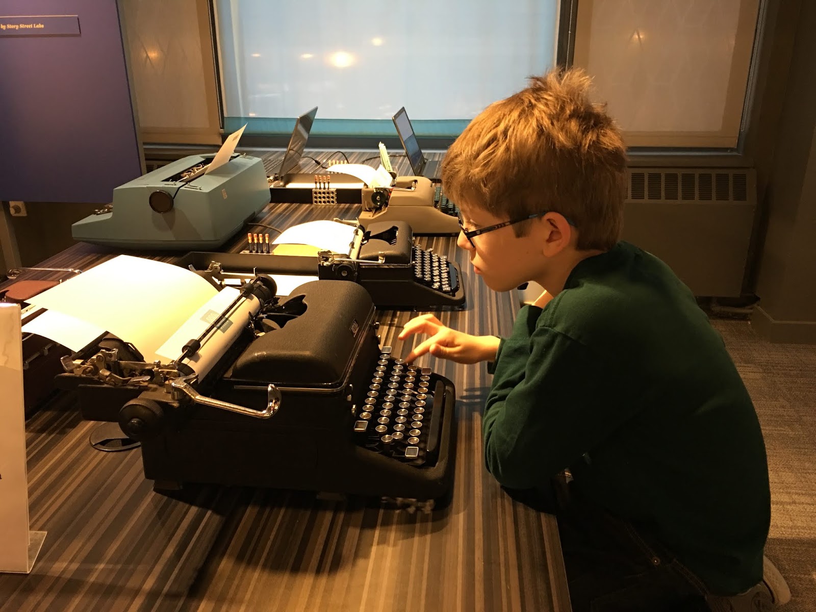American Writers Museum, which is a relatively new museum and one with a completely interactive set of exhibits. It’s not very big, but James and I both found it really interesting and unique. They had a temporary exhibit on Laura Ingalls Wilder that was the inspiration for checking it out and it included the only known audio recording of her voice. Very cool. James enjoyed the typewriter section where you are encouraged to type the start of a story and then the next person can come along and continue it. I would love to see what it looks like at the end of the day.