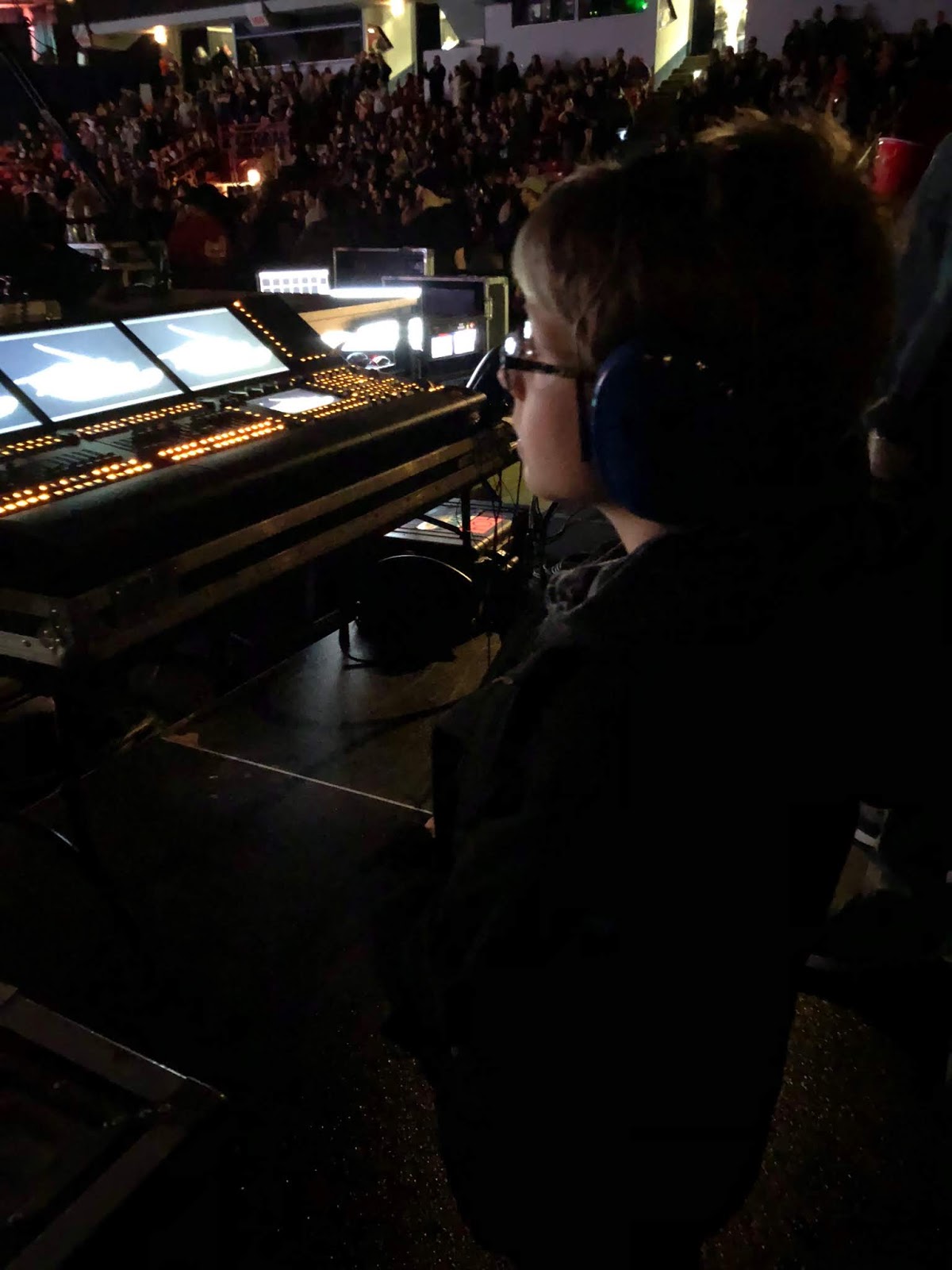 James enjoying his special seat in the sound booth. Thanks, Jerry! He loved it! |