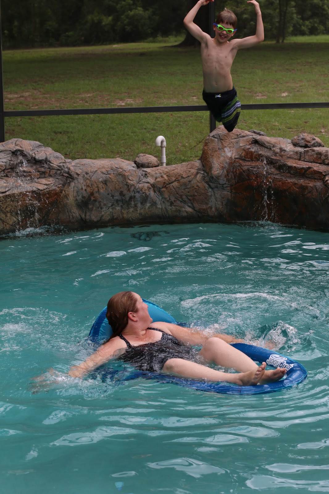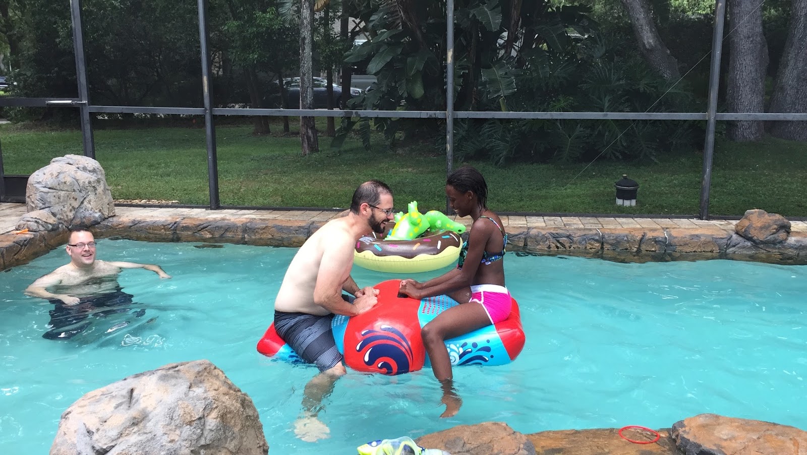 Chris and Tia attempt to teeter totter in the pool. They were not upright for long.