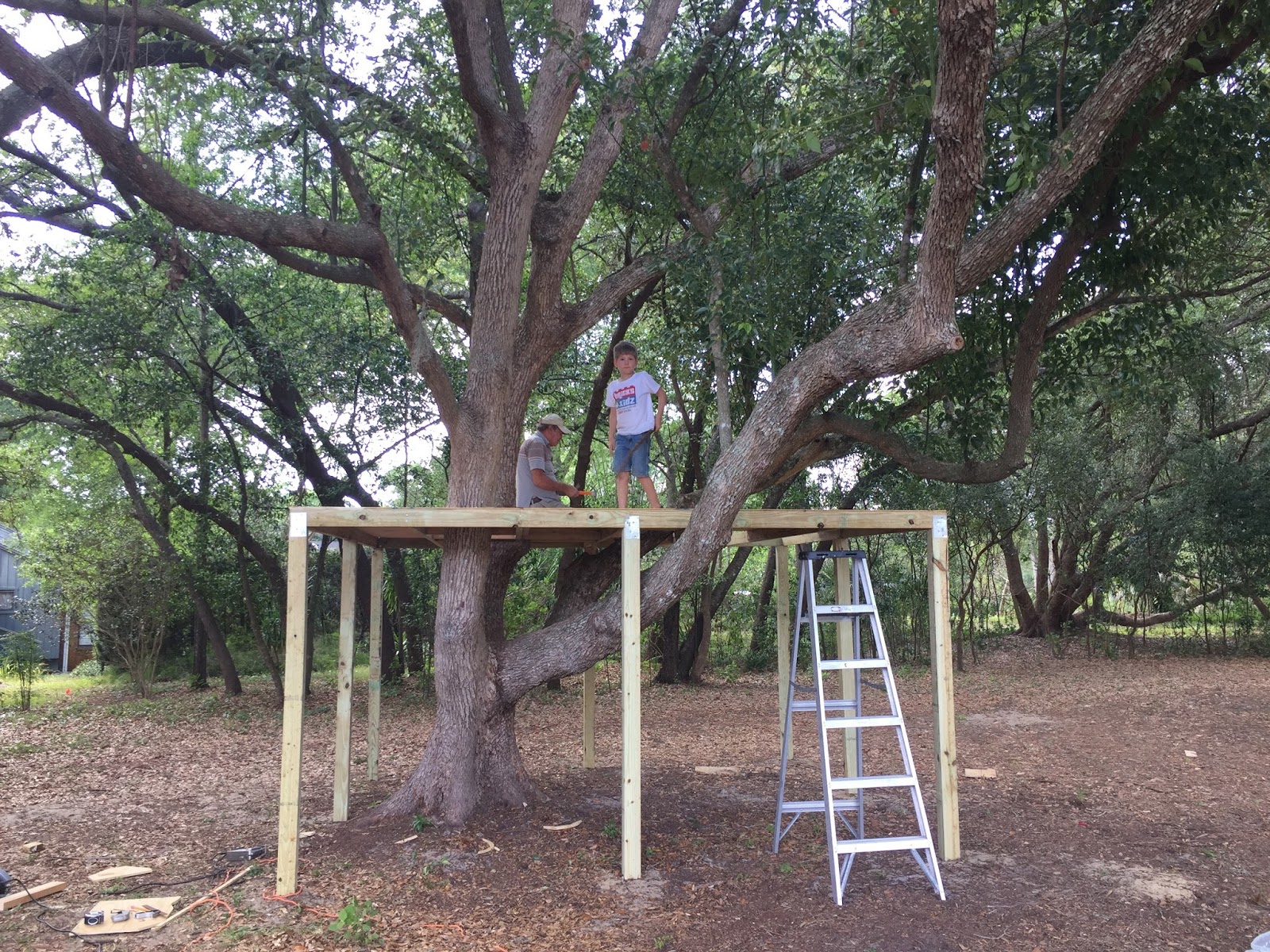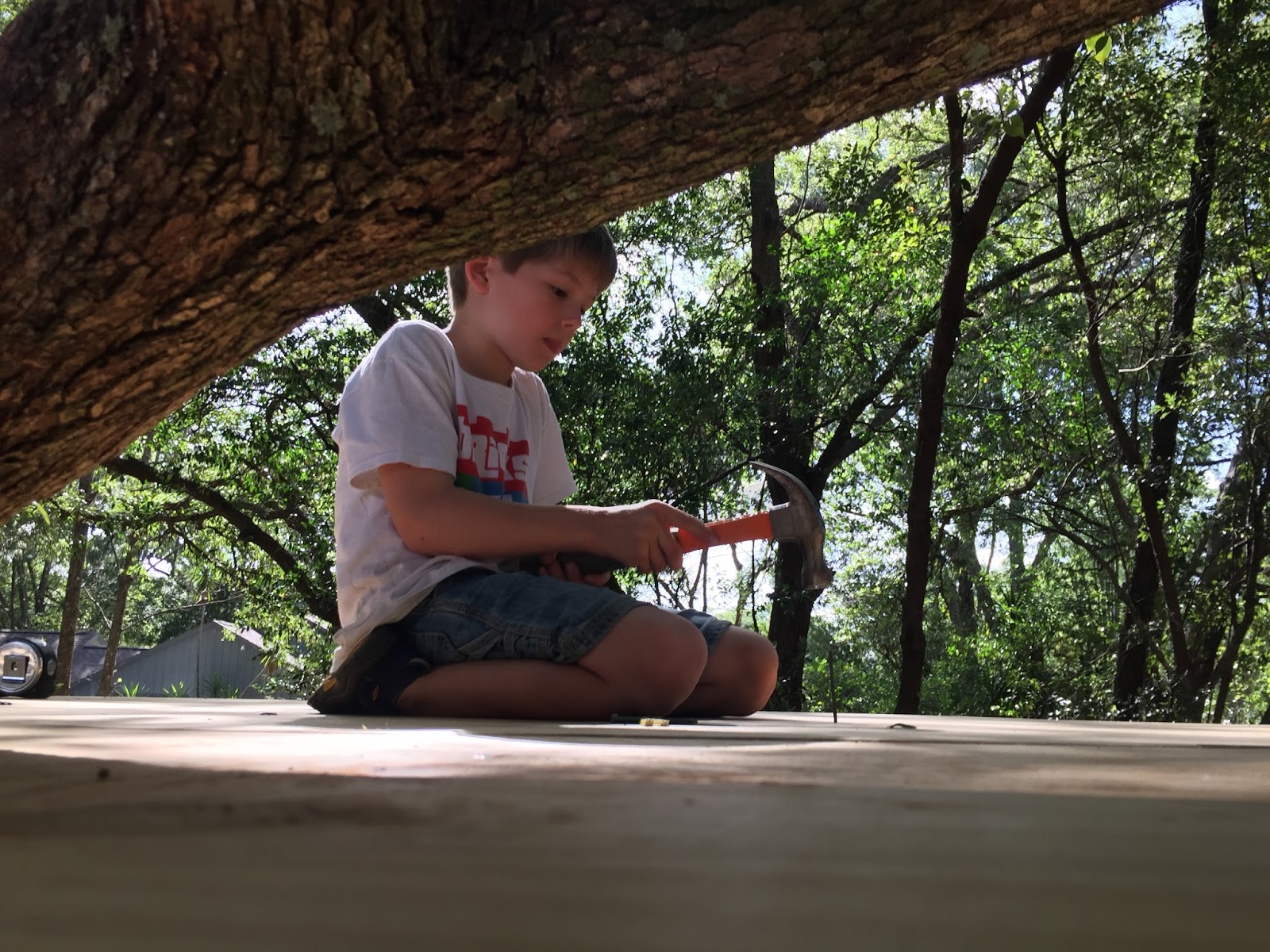 Spring also meant time in the backyard and the pool, and an added bonus for James– a new treehouse!
