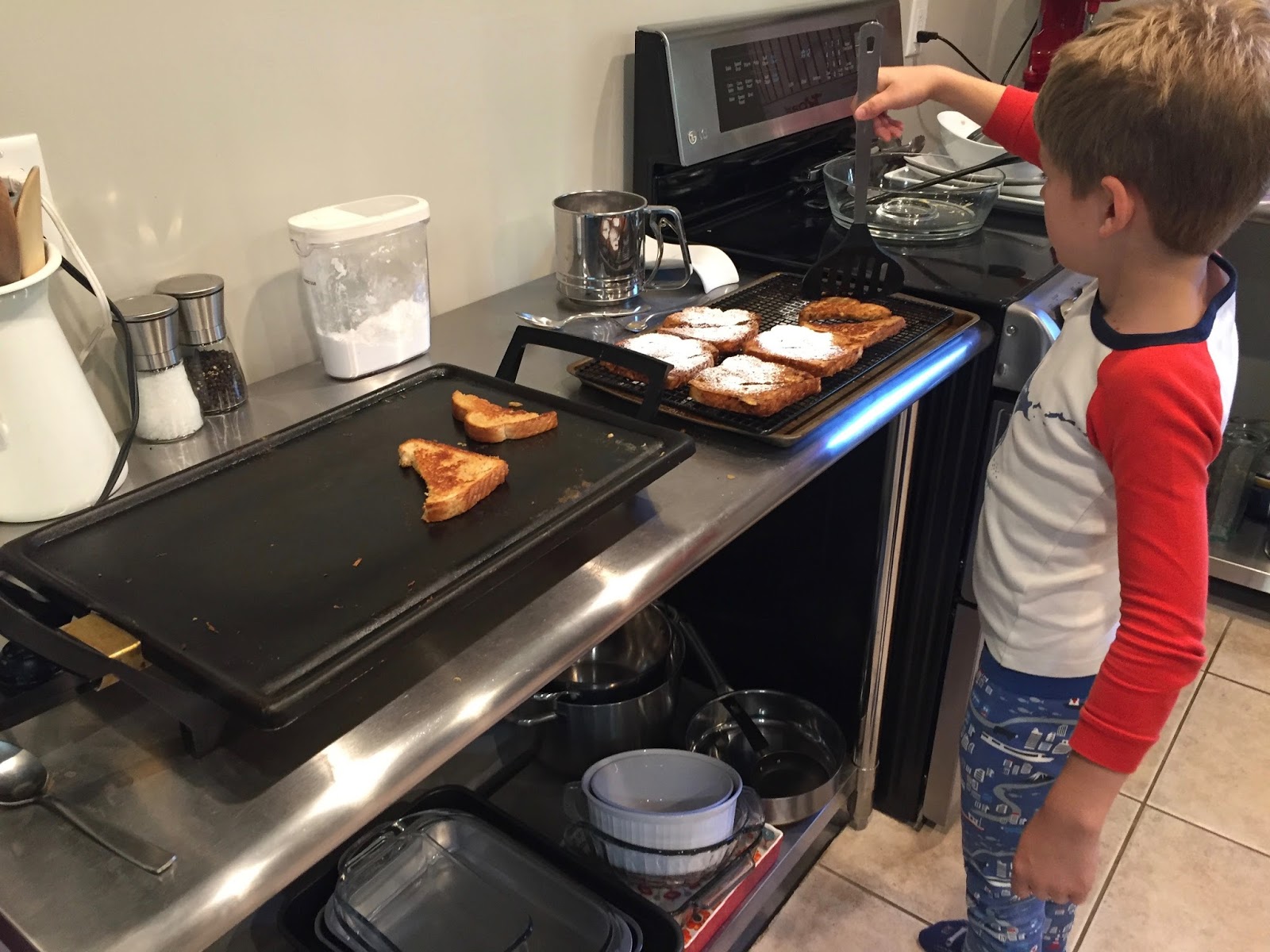Putting him to work in the kitchen making some yummy French toast. It’s never too early to learn how to cook! |