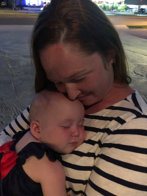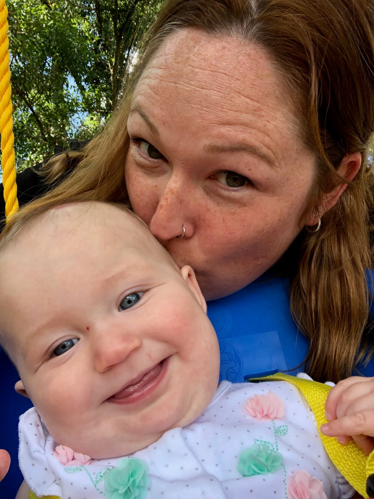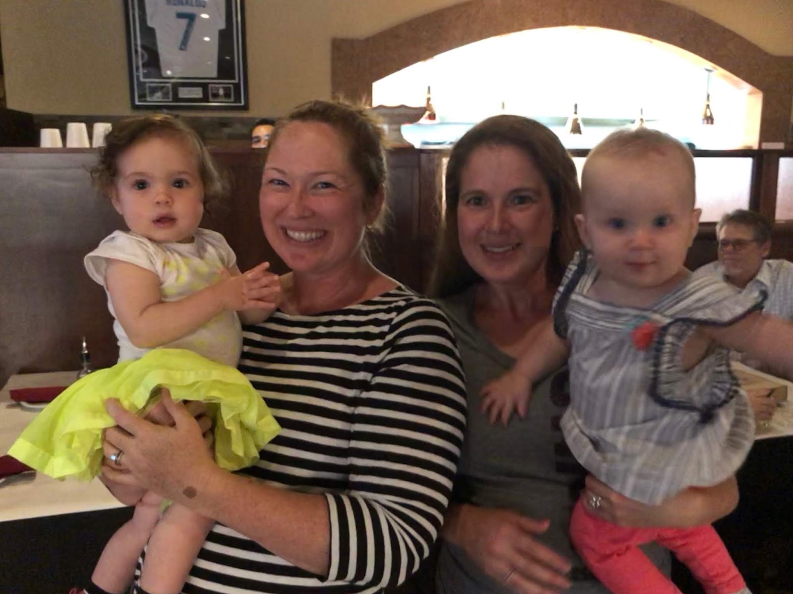 Tanya and I trade daughters so I get to cuddle sweet Gigi and she tries to corral squirmy Ellie. Ha! |