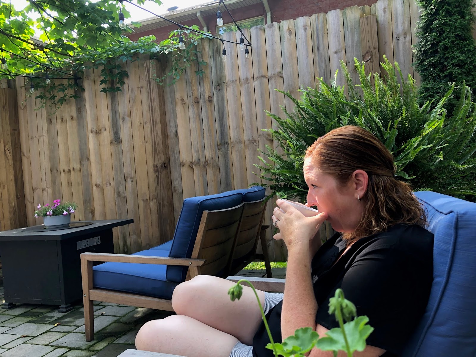 Drinking my morning coffee in the peace and quiet of the courtyard. Such a treat. |