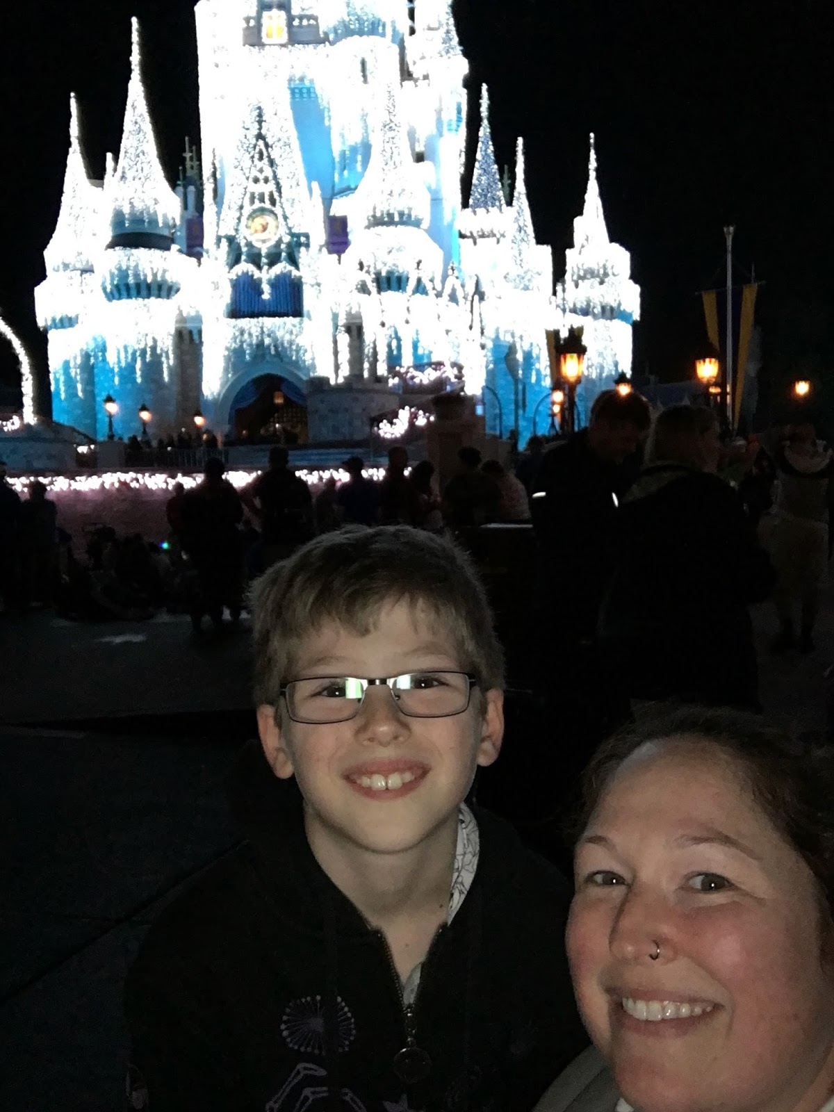 James and I snag a selfie in front of the beautiful castle all lit up for the holidays. |