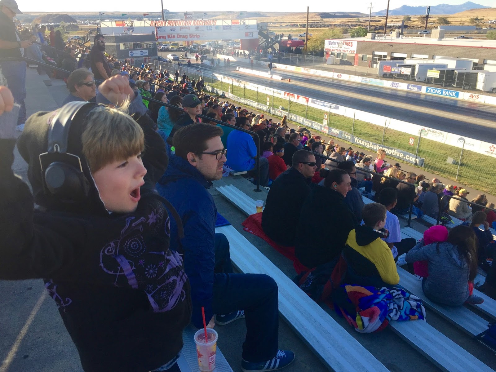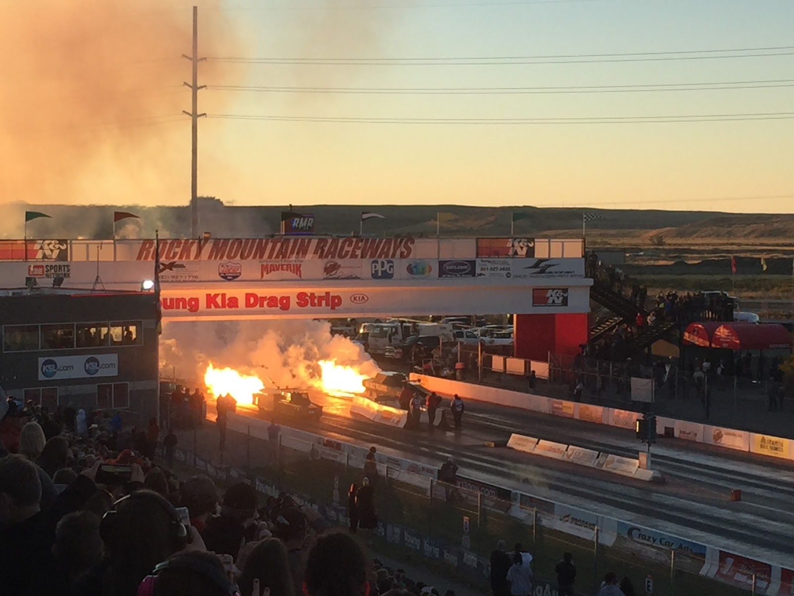 Rocky Mountain Raceways drag strip, topped off with a male rite of passage– the eating of a large piece of meat. In this case, they initiated James with an absolutely enormous T-bone steak at