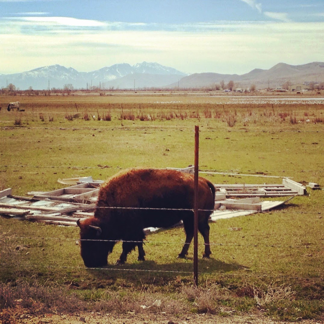 We find a buffalo in a nearby field. Wild West, indeed! |